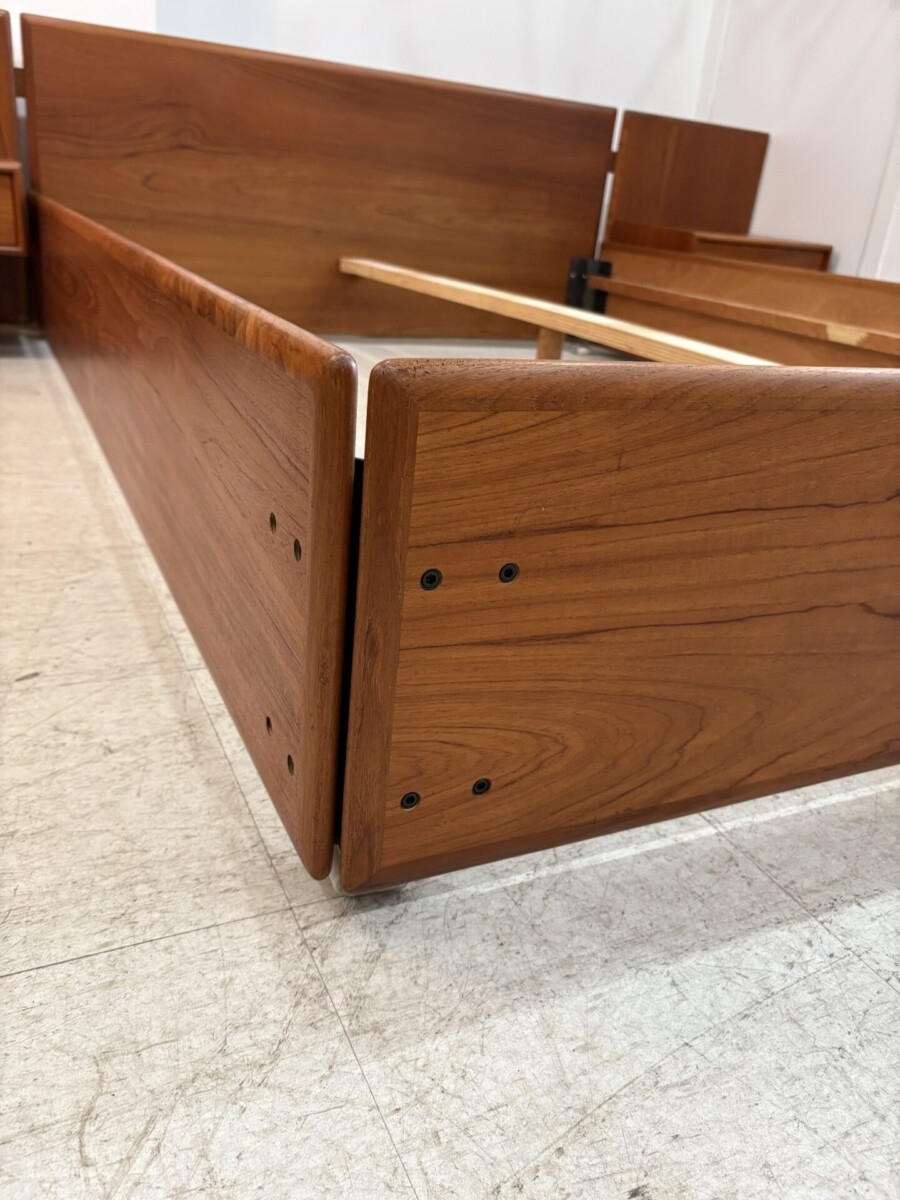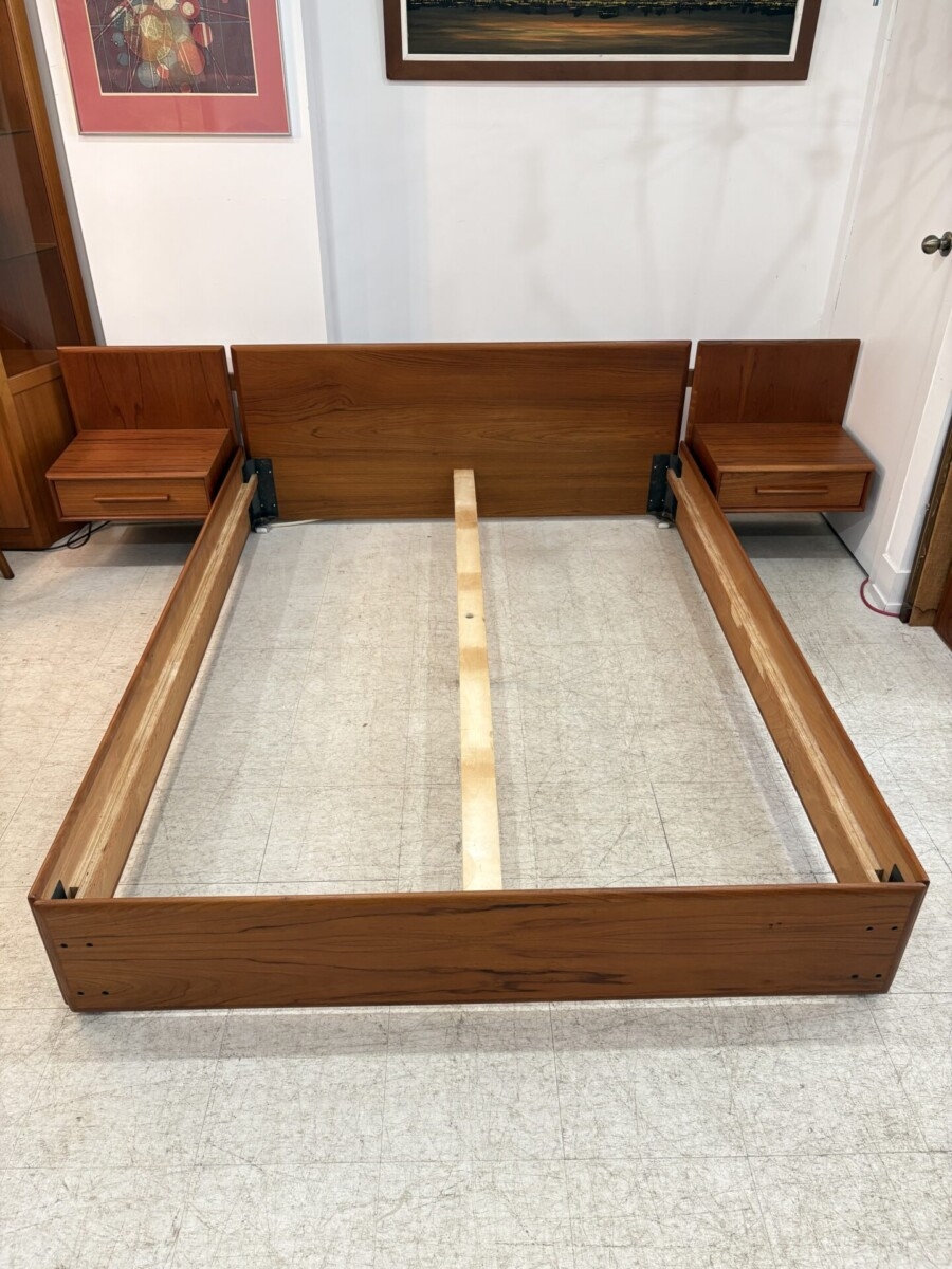 Teak queen size bed with floating night tables.(this bed includes the mattress support slats)