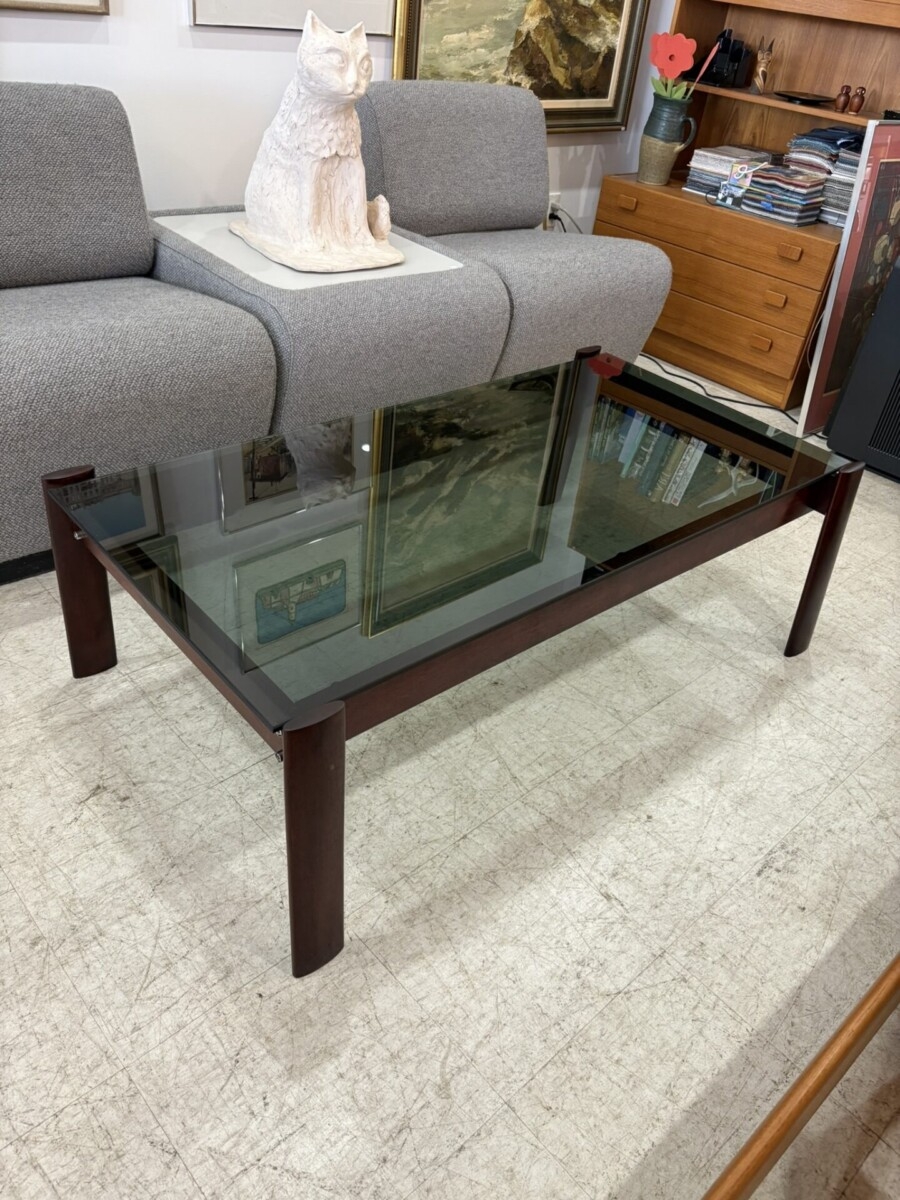 Beautiful Brazilian Rosewood Percival Lafer coffee. This set features a smoked glass top.