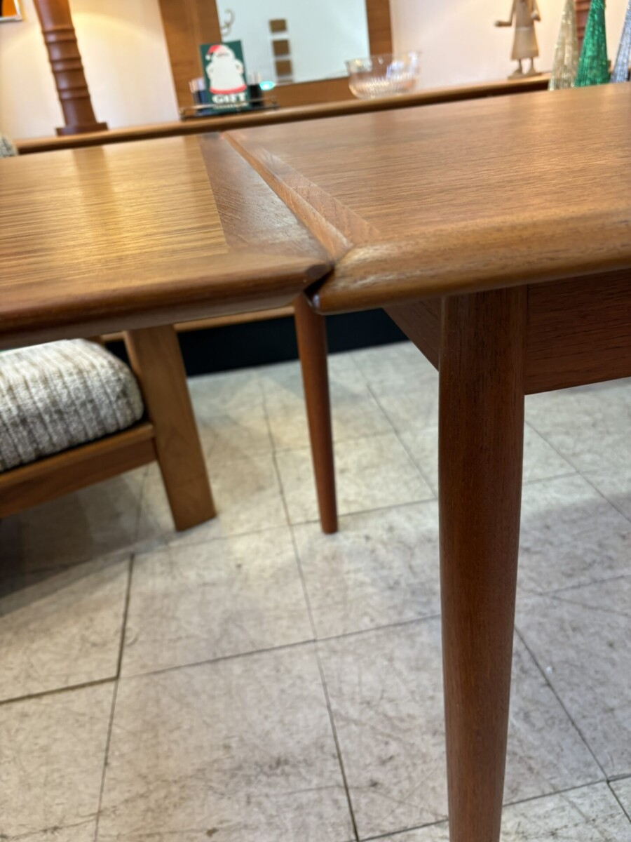 Teak dining table featuring 2 slide out leaves(slight water mark on the main top).