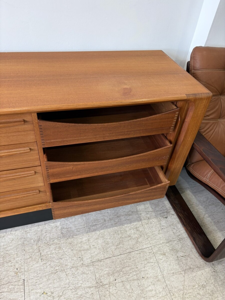 Teak dresser featuring 2 tambour doors and 9 drawers(repair on the top – see photo)