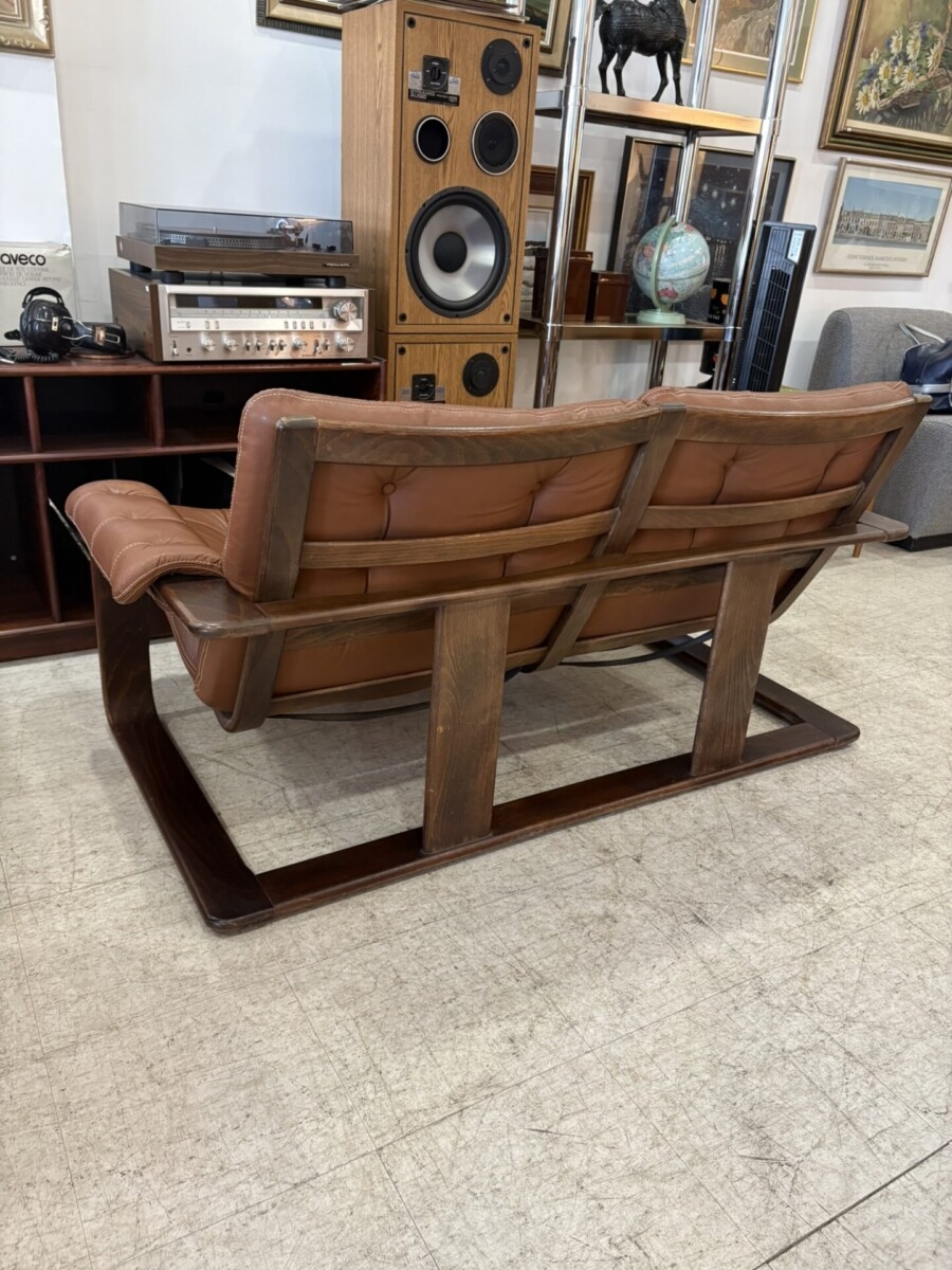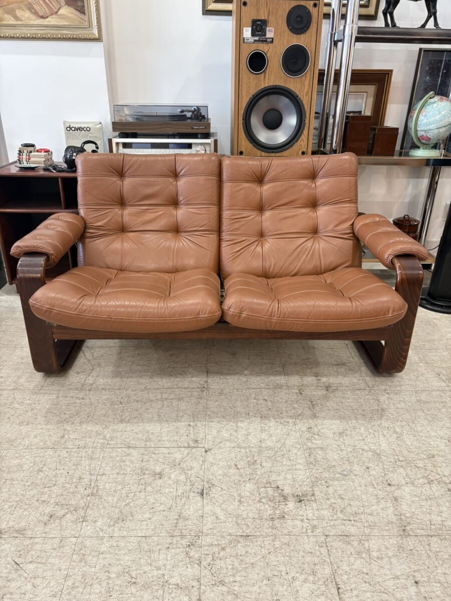 We just received this Coja bent wood leather love seat. The leather is in very good condition and will be cleaned. We will be replacing the seat webbing. We also received 2 matching arm chairs.