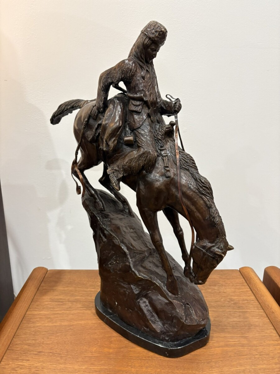 Cast bronze statue “Mountain Man” by Frederic Remington circa 1980’s.